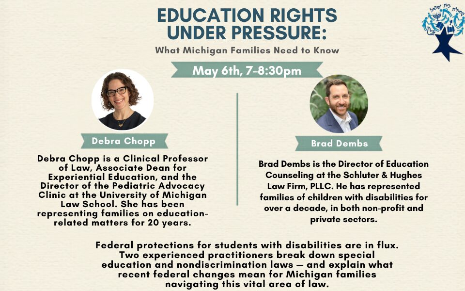Federal protections for students with disabilities are in flux. Two experienced practitioners will break down special education and nondiscrimination laws — and explain what recent federal changes mean for Michigan […]