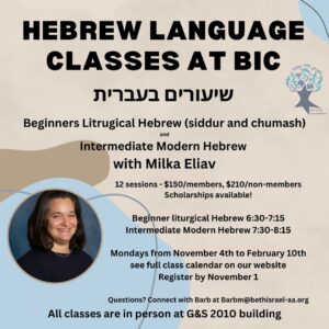 We are offering Beginners Liturgical Hebrew and Intermediate Modern Hebrew. Please see registration page for more details.