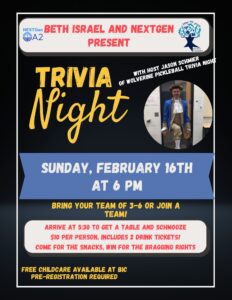 Join us for Trivia Night! We will have prizes, drinks, snacks, and FUN! Each $10 ticket comes with two drink tickets. Teams of 3-6 welcome OR register without a team and you’ll be given a team! Childcare available and each entrant gets two drink tickets!