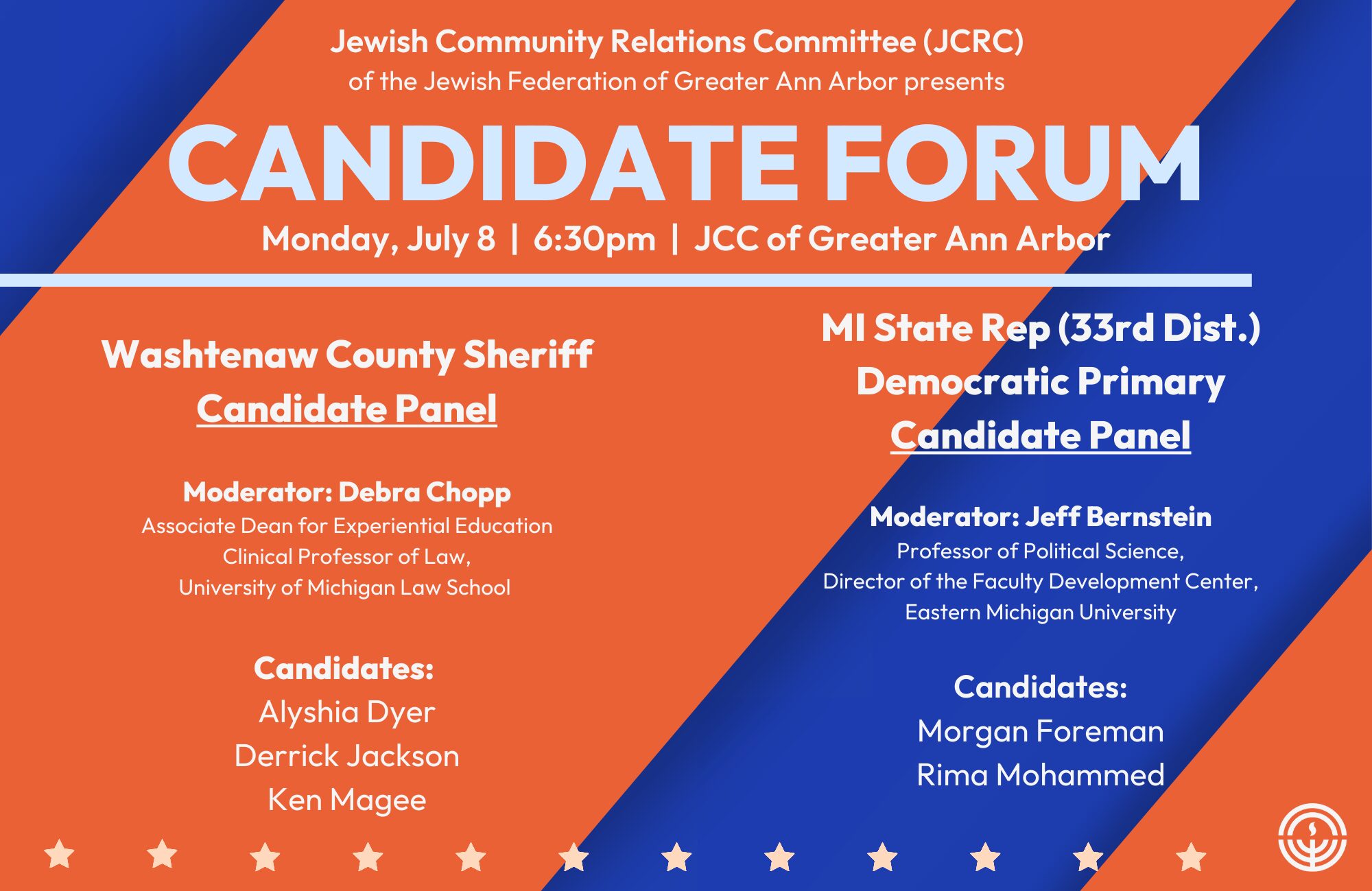 Hear from candidates for Washtenaw County Sheriff and MI State Representative (33rd Dist.) Democratic primary.