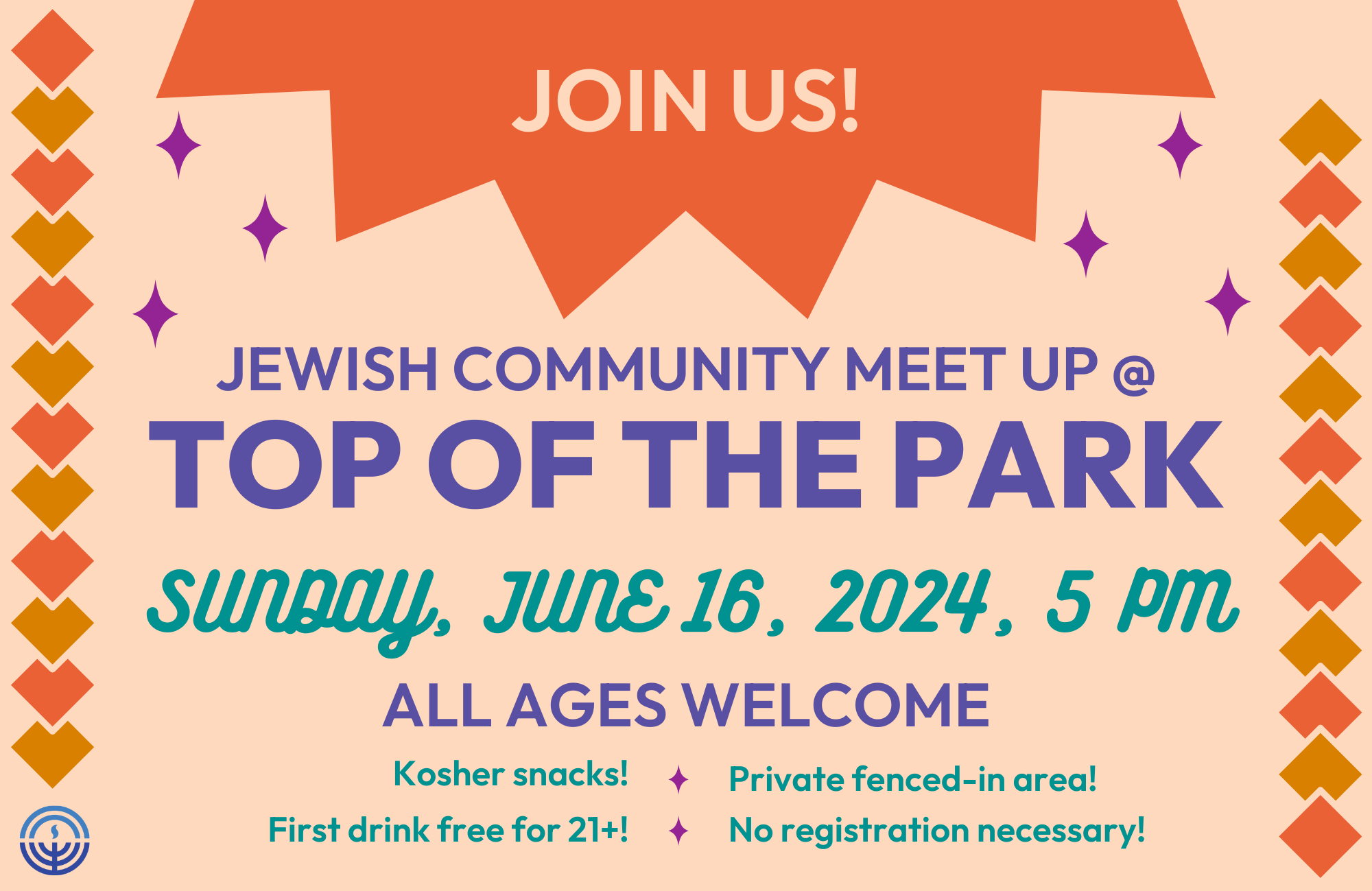 You were going to hang out at Top of the Park this summer anyway, so make a night of it with with your Jew crew!The Jewish Federation will provide a private space in the fenced-in area (AKA The Grove), kosher snacks, and a free drink ticket for those 21+.
