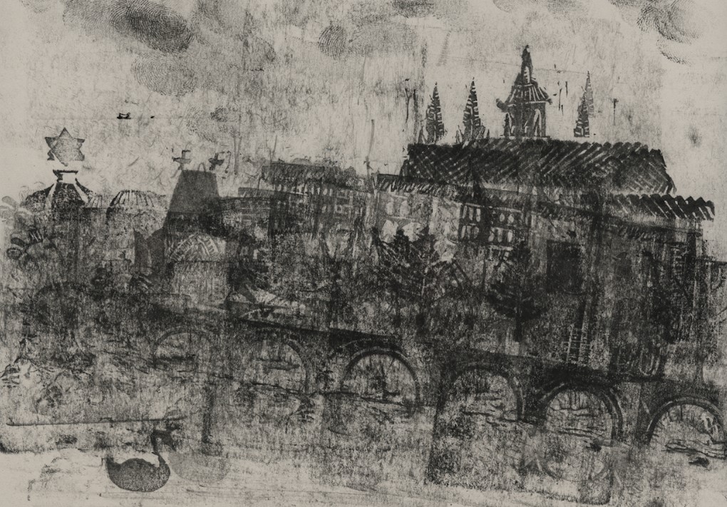 In Between City (00:08:50) imitates a poetic wandering through a fictional Central European city and its memory, blurring reality and fiction. It is constructed from a collection of fragments, stories, images, and impressions, including of the vanished Jewish worlds it once contained. Kreines will also discuss his ground-breaking print animation technique, using stamps carved from erasers. (In Between City is included in the shorts competition of the 2025 Ann Arbor Film Festival and will be screened there Friday night, March 28.)