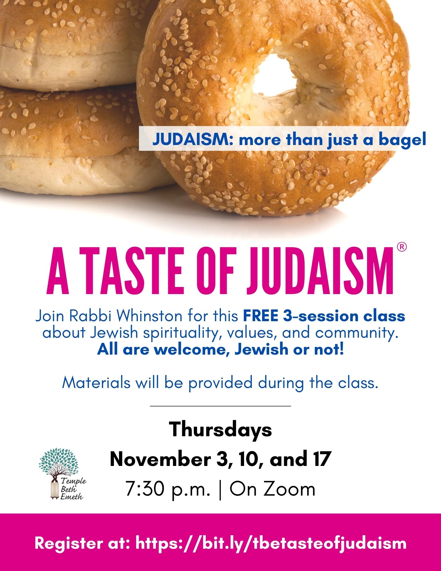Join Rabbi Whinston for this FREE 3-session class about Jewish spirituality, values, and community.