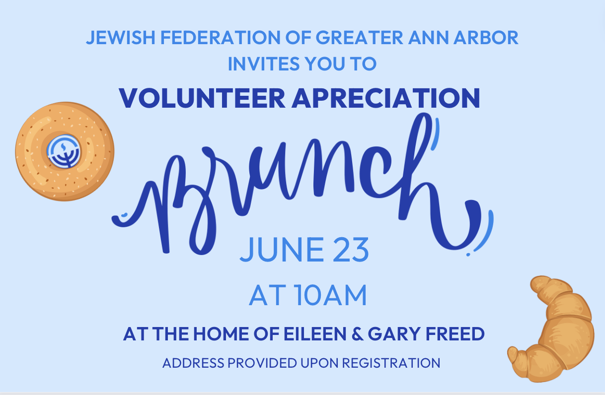 A THANK YOU brunch for everyone who volunteers their time to the Jewish Federation of Greater Ann Arbor to support our vibrant Jewish community.