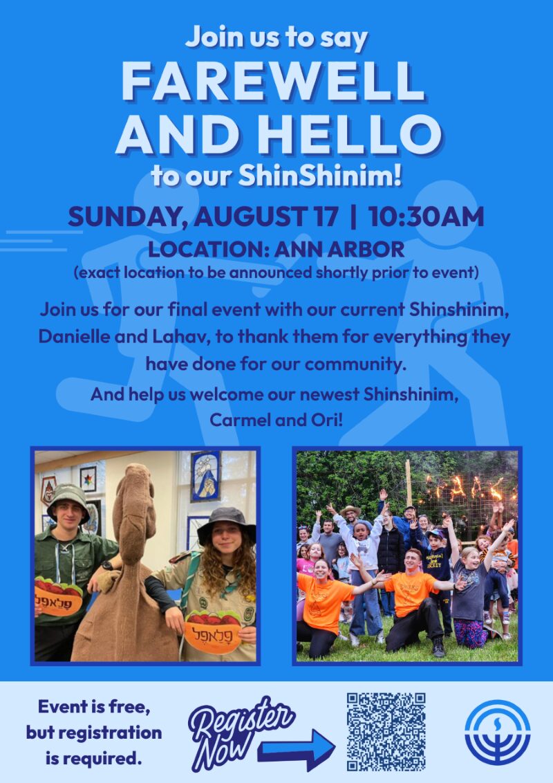 Register here! It's the biggest party of the season celebrating Yom Ha'Atzmaut (Israeli Independence Day)! Get ready for the JCC of Greater Ann Arbor to transform as you travel from the streets of Tel Aviv to the Negev desert and beyond at this epic Israeli Block Party. FEATURING: 🎤 Live music from the TLV Band […]