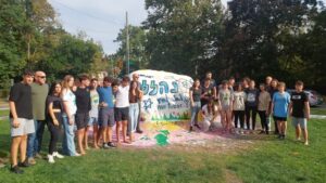 Ann Arbor and Nahalal teens painted the UM rock during the P2G Student Exchange in fall of 2023.
