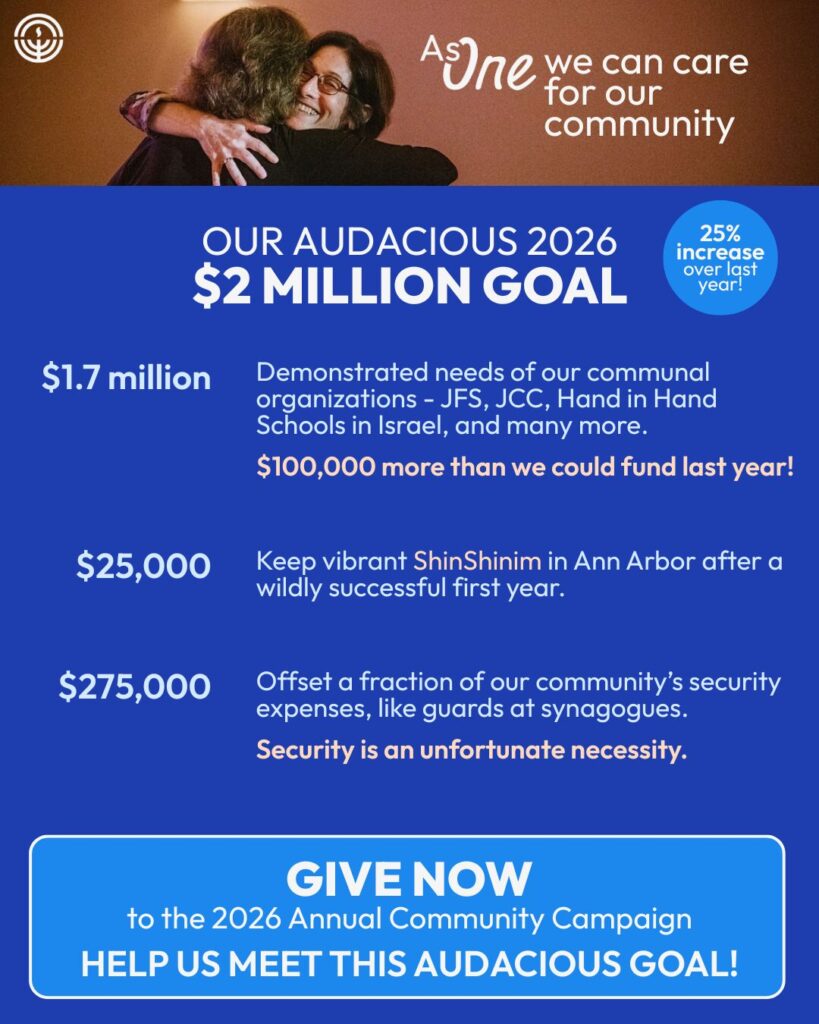Our inaugural year of hosting Israel gap-year students (Shinshinim) to deepen our connection with and understanding of Israel was a huge success. Last year, Shinshinim sang with preschoolers at the JCC, engaged teens in BBYO, connected with children & families at HDS, and presented Jewish & Hebrew Story Time at the Ann Arbor Public Library. Our second cohort is already expanding their involvement to new groups in the community. Thanks to a pilot grant and the support of our local partners, we have been able to fund this project for its first two years. Continuing this widely impactful program will cost Federation $25,000/year.